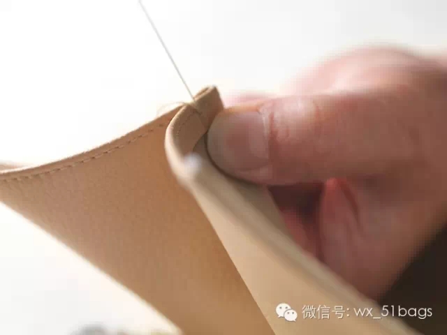 打磨油邊:將皮邊反復打磨,保證撞色油邊平整光滑。